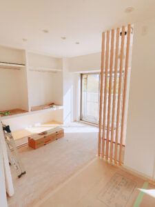 床材は、いつも通り通常フローリングではなく「無垢材」で仕上げます。
