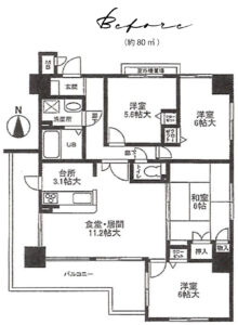 新耐震基準、オートロック・宅配BOX完備のマンションですが、自転車の駐輪台数に限りがあるため、今回、玄関土間を広くとり、住戸内に自転車を置くことのできるスペースを作ります。