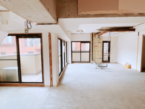 「平和大通り」に近い、広島市中区大手町3丁目所在の弊社所有物件(区分所有マンション)の改装工事進捗となります。